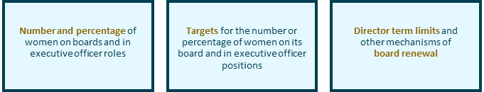 The objective of the disclosure requirements is to increase transparency for investors and other stakeholders regarding the representation of women on boards and in executive officer positions, and the approach that issuers take in respect of such representation.